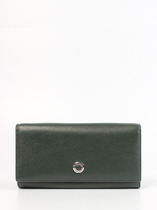 Кошелек женский выполнен из натуральной кожи. Детали: основное отделение на магнитной кнопке, 1 отделение для купюр, 8 отделений для визиток или карт, 1 отделение на кнопке для мелочи. Фурнитура серебристого цвета. Упаковка: фирменная белая коробка.