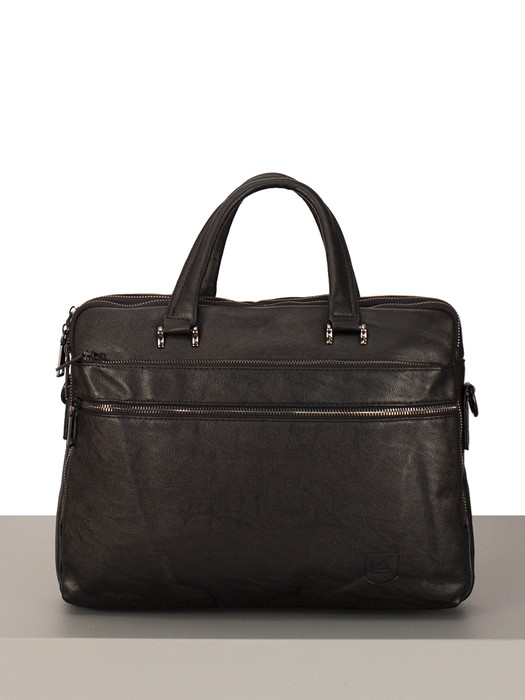 Сумка-портфель выполнена из экокожи. Детали: 2 короткие ручки по 35 см, 1 длинная регулируемая ручка 85 см - 155 см. Внутри изделия: 2 отделения на молнии, 1 карман на молнии, 1 карман открытый, 1 карман для ноутбука на хлястике с липучкой. Снаружи изделия: 2 кармана на молнии спереди, 1 карман на молнии с оборотной стороны изделия. Брендированная подкладка из полиэстера. Металлическая фурнитура черного цвета. В комплекте фирменный пыльник.