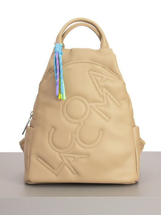 Рюкзак женский выполнен из экокожи. Детали: 2 регулируемые ручки по 102 см.  соединяющиеся в одну при помощи молнии, 2 маленькие ручки для держания в руке. Внутри изделия: 1 основное отделение на молнии, 2 открытых кармана, 1 карман для мобильного телефона, 1 карман на молнии. Снаружи изделия: 1 карман на молнии спереди, 1 карман на молнии на оборотной стороне. Брендированная подкладка из хлопка. Металлическая брендированная фурнитура серебристого цвета. В комплекте фирменный пыльник.