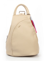 Рюкзак женский выполнен из экокожи. Детали: 2 укреплённые стропой регулируемые ручки по 85 см, маленькая ручка для держания в руке. Внутри изделия: 1 основное отделение на молнии, 2 открытых кармана, 1 карман для мобильного телефона и 2 кармана на молнии. Снаружи изделия: 1 карман на оборотной стороне на молнии и 1 карман спереди на молнии. Брендированная подкладка из хлопка. Металлическая брендированная фурнитура золотистого цвета. В комплекте фирменный пыльник.