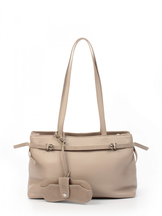 Сумка женская выполнена из натуральной кожи. Детали: 2 ручки 60 см. Внутри изделия: 1 отделение, закрываемое на молнию, и 2 дополнительных отделения на магнитной кнопке, 1 карман на молнии, 1 открытый карман. Плотная подкладка из хлопка. Металлическая брендированная фурнитура серебристого цвета. В комплекте фирменный пыльник для хранения сумки.