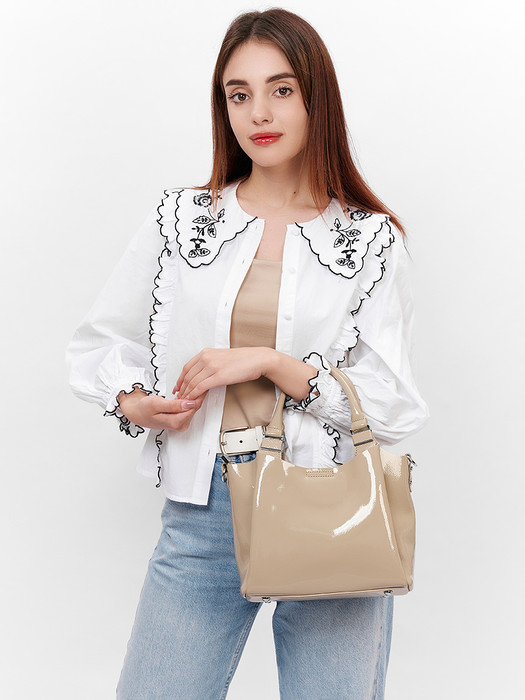 Сумка женская выполнена из натуральной кожи. Детали: 2 ручки по 30см., 1 длинная съемная ручка 125см. Внутри изделия: 1 отделение на молнии и 2 на магните, 1 карман на молнии, 1 открытый карман. Брендированная подкладка из полиэстера. Металлическая брендированная фурнитура серебристого цвета. В комплекте фирменный пыльник.