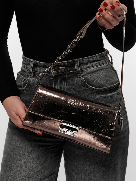 Сумка женская выполнена из натуральной кожи. Детали: 1 короткая съёмная ручка 60см., 1 длинная ручка до 120см. Внутри изделия: под клапаном на замке 1 отделение на молнии, 1 карман на молнии, 1 открытый карман. Снаружи изделия: 1 карман на оборотной стороне. Брендированная подкладка. Металлическая брендированная фурнитура серебристого цвета. В комплекте фирменный пыльник.