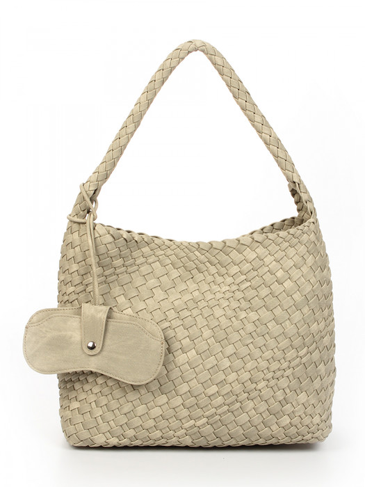 Сумка плетеная выполнена из экокожи. Детали: 1 ручка 50 см. Сумка имеет 1 отделение, закрываемое на магнит. В комплекте фирменный пыльник для хранения сумки, чехол для очков, косметичка. Внутри косметички: 1 отделение на молнии, 1 карман на молнии, 1 открытый карман. Особенности косметички: брендированная подкладка из хлопка, брендированная фурнитура серебристого цвета.
