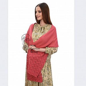 Женский шарф из шерстяной пряжи, украшен ажурной вязкой по краям и жемчужными бусинами. Размер шарфа 190*30 см.