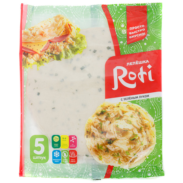 Замороженная лепешка Роти, после приготовления может быть как самостоятельным блюдом,так и основой многих блюд (сэндвичей, пиццы, роллов, различных закусок и блюд).