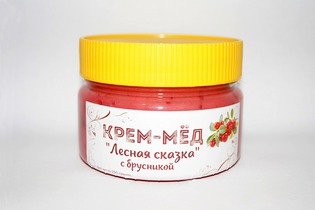 Состав: взбитый липовый мёд, сок клюквы, ягоды клюквы.