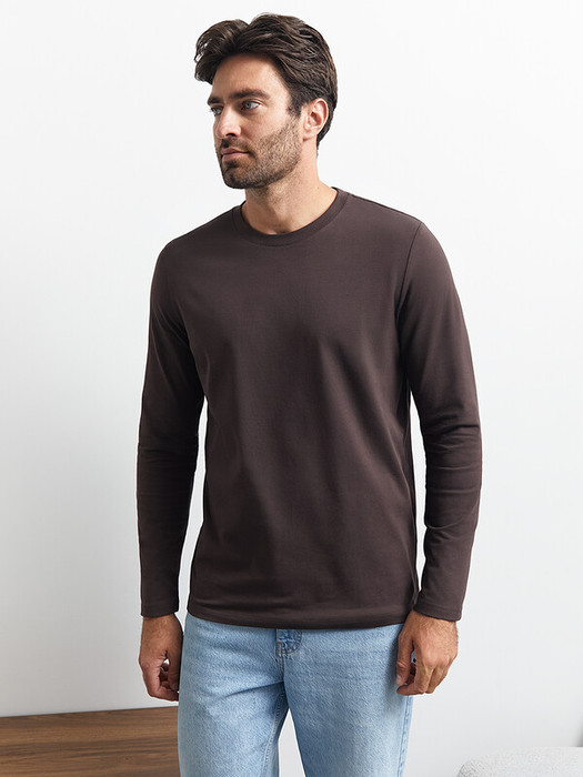 Мужской лонгслив прямого кроя с длинными рукавами и круглым вырезом горловины. Изготовлен из тактильно приятного хлопка с эластаном, который отлично пропускает воздух, приятно ощущается на теле и подходит даже для самой чувствительной кожи.