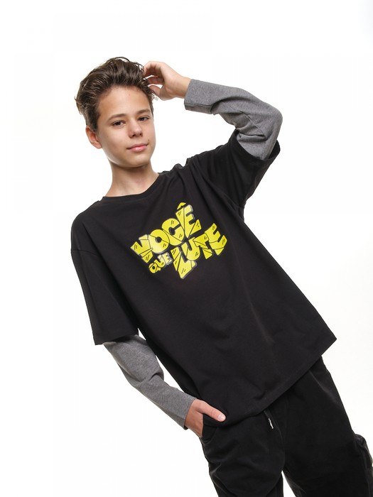 Совместные покупки Тюмень Детская одежда Футболки, майки — Mini Maxi Лонгслив с принтом (128-146см) 22-0229-2(3) черный/серый