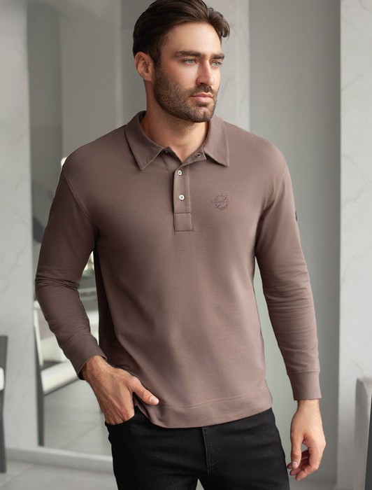 Совместные покупки Тюмень Мужская одежда Футболки — Лонгслив с воротником поло на пуговицах из премиального хлопка с эластаном