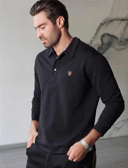 Совместные покупки Тюмень Мужская одежда Футболки — Лонгслив с воротником поло на пуговицах из премиального хлопка с эластаном