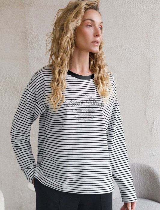 Совместные покупки Тюмень Женская одежда Футболки — Лонгслив в полоску с принтом из премиального хлопка с эластаном