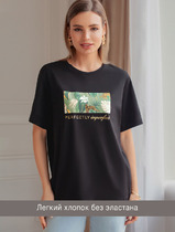 Vilatte Футболка из премиального хлопка с авторским принтом D49.089 черный_perfe