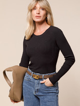 Vilatte Джемпер тонкой вязки в рубчик из вискозы D39.299 черный