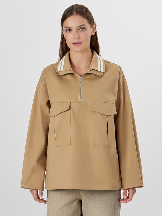 Воротник со стойкой и декоративным элементом добавляет куртке индивидуальности. Центральная молния, накладные карманы с клапанами и боковые карманы делают анорак практичным для повседневной носки — в них удобно хранить телефон, ключи или руки. Низ куртки обработан эластичной резинкой, которая мягко фиксирует изделие по фигуре.