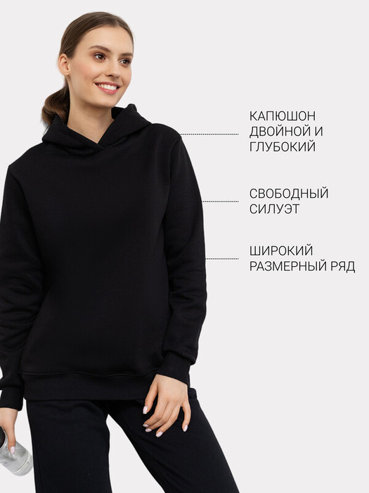 Удлиненное спортивное худи из футера с теплым подчесом. Натуральный хлопок в составе полотна для прочности и долговечности дополнен полиэстером. Силуэт расслабленный, свободный. Слегка спущенная линия плеча и углубленная пройма дарят свободу движений. Уютный капюшон, манжеты на длинных рукавах и пояс из рибаны защитят от ветра. Отличное худи для спортивных занятий, домашнего отдыха или прогулок.