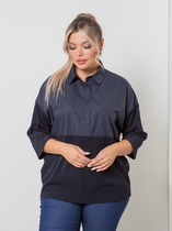 Блуза прямого силуэта. Перед и спинка цельнокроенные. Горловина обработана воротником-стойской. Проймы обработаны бейкой из основного полотна. Низ обработан вподгибку.