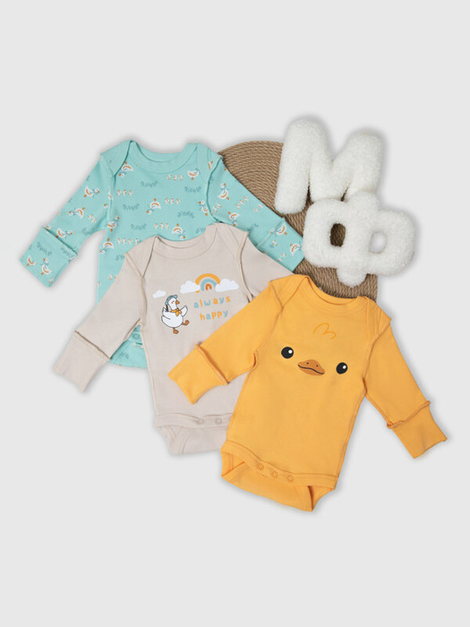Совместные покупки Тюмень Детская одежда Боди, ползунки и прочее — Mark Formelle БОДИ ДЕТСКОЕ (3ШТ.) 13016-1-3 13016-1-3 оранжевый +уточки на бирюз