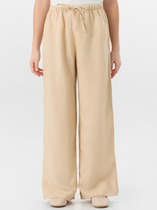 Посадка средняя. Пояс отрезной, внутрь пояса застрочена эластичная тесьма и шнур. По поясу идут две декоративные строчки.  Боковые швы перенесены вперед. На передних деталях накладные карманы с наклонным входом от боковых швов. По низу изделия внутрь застрочена эластичная тесьма.