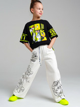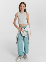 Брюки для мальчиков, прямого силуэта. Пояс цельнокройный с втачной эластичной тесьсьмой. Пояс прострочен двумя отделочными строчками. По переду обработаны карманы в швах. Низ брюк обработан швом в подгибку на двухигольной плоскошовной машине.