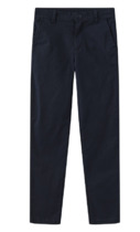Брюки для мальчиков. Без бокового шва. Карманы в вытачке. Пояс отрезной с внутренней эластичной тесьмой 50RV. Пояс прострочен двумя отделочными строчками. Внутри в пояс втянут шнур 8 PX-2 . Низ брюк обработан манжетами из рибаны.
