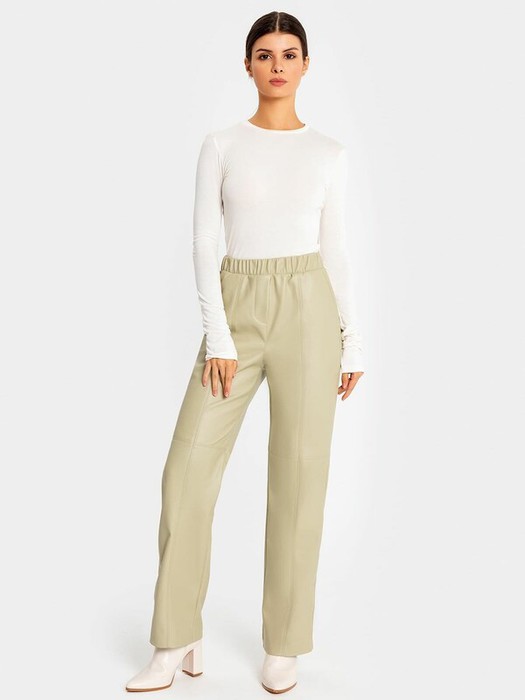 Женские брюки прямого свободного силуэта из экокожи. Пояс с эластичной тесьмой внутри, линия талии чуть завышена. Есть боковые карманы. На передней части модели – имитация гульфика, а также горизонтальные и вертикальные рельефные швы. Эти брюки вы искали!