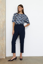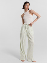 Брюки женские прямого силуэта из трикотажного полотна интерлок. Пояс цельнокроенный на жаккардовой эластичной тесьме.