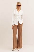 Нижние срезы брюк обработаны швом вподгибку на 2х игольной плоскошовной машине
