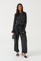 Брюки прямого силуэта. Посадка средняя. Пояс цельнокроеный с эластичной тесьмой внутри (вн. 20мм 20RV). С внутренней стороны пробиты петли и втянут шнур (хб тесьма 10мм) с застроченными концами. В боковых швах обработаны карманы. Подкладка карман из кулирки.
