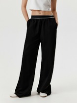 Черные женские брюки прямого свободного кроя сочетают в себе повседневный комфорт и изысканную деталь. Модель со средней посадкой дополнена изящным декоративным элементом по верхнему срезу — тонкой текстильной вставкой, стилизованной под край нижнего белья. Эта деликатная деталь придает образу игривую нотку и особый шарм, оставаясь при этом тактично скрытой под одеждой.