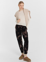 Брюки изготовлены из трикотажного полотна футер. Брюки прямые. свободные. Пояс цельнокроеный с эластичной тесьмой внутри. В боковых швах расположены карманы, подкладка из основного полотна. Низ брюк обработан швом в подгибку с эластичной тесьмой внутри.