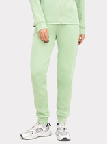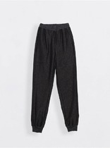 пояса пробиты петли и втянут шнур с застроченными концами. В боковых швах обработаны карманы. Подзор для карманов из основного полотна, подкладка из кулирки. По низу отрезные манжеты из основного полотна.