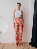 Брюки с посадкой на талии свободного силуэта. Пояс цельнокроеный с резиной внутри 40RV подвернутый внутрь. Низ изделия обработан швом в подгибку.
