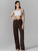 Посадка брюк средняя. Пояс цельнокроеный с эластичной тесьмой внутри. Низ брюк обработан в подгибку.