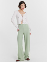 Посадка брюк средняя. Пояс цельнокроеный с эластичной тесьмой внутри. Низ брюк обработан в подгибку.
