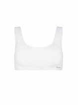 Бюстье женское. Передняя и задняя детали выполнены из рибаны. Горловина и проймы обработаны бейкой поперечной из рибаны. Нижний срез обработан бейкой поперечной из рибаны (внутри тесьма). На передней детали посередине горловины на бейке застрочен уголок. Декор - нашивка. Передняя деталь на подкладке из рибаны.