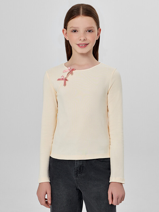 Украшением модели служит декоративный вырез на передней части, дополненный нашитыми бантиками, которые добавляют образу нежности и милого шарма. Длинные рукава и низ изделия обработаны мягким швом, который не раздражает кожу и обеспечивает аккуратную посадку.