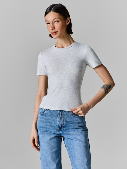 Джемпер прилегающего силуэта. Перед и спинка цельнокроеные. Рукава короткие, втачные.  Горловина обработана обтачкой из основного полотна. Низ и рукава вподгибку.