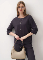 Материал с добавлением люрекса создает мягкое мерцание, которое привлекает внимание и переливается при движении. Круглая горловина аккуратно обработана бейкой, что обеспечивает аккуратный и прочный край.