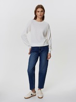 Джемпер женский прилегающего силуэта из трикотажного плотна рибана. Горловина круглой формы, окантована бейкой из рибаны. Рукав втачной, длинный, узкий. Нижние срезы обработаны швом вподгибку.