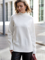 Джемпер свободный, укороченный. Горловина круглой формы с воротником стойкой. Рукава втачные длинные, плечо спущено. Нижние срезы джемпера и рукавов обработаны швом вподгибку.