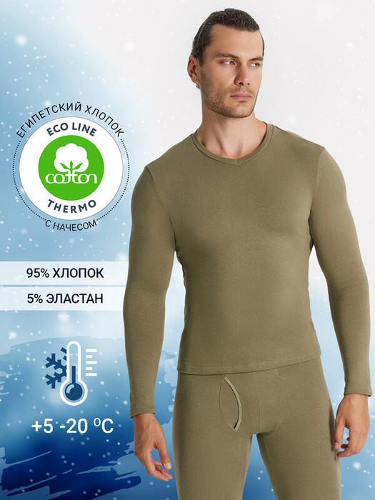 Теплый лонгслив с V-образной формой горловины и  длинными рукавами. Для тех, кто уделяет особое внимание экологически чистой продукции. Идеально подходит для людей с чувствительной кожей, гигроскопично. Теплое белье Mark Formelle изготовлено из высококачественного длинноволокнистого египетского хлопка по специальной технологии, гарантирующей комфорт и отличные теплоизоляционные свойства.