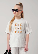 Футболка верхняя прямого силуэта. Перед и спинка цельнокроенные. Рукава втачные короткие. Линия плеча спущена. Горловина круглой формы, обтачка из трикотажного полотна рибаны 1*1. Шов втачивания рибаны по спинке закрыт бейкой из основного полотна. Низ футболки и рукавов обработан на 2-х игольной плоскошовной машине швом в подгибку.