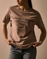 Футболка прямого силуэта из трикотажного полотна кулирка. Горловина круглой формы, широкая обтачка из рибаны.