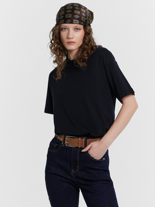 Эта женская футболка станет незаменимой базовой моделью в вашем гардеробе. Прямой и свободный крой обеспечивает комфорт и свободу движений. Круглая форма горловины и короткие рукава делают её универсальной и подходящей для любого случая. Изделие выполнено из хлопковой кулирки, гарантирующей мягкость и приятное ощущение на коже. Эта футболка идеально сочетается с различными элементами гардероба, создавая стильные и удобные образы на каждый день.