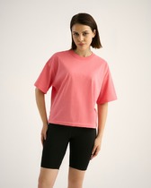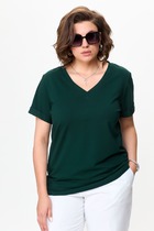 Футболка прямая, свободная. Горловина круглой формы обработана бейкой в 3 сложения из основного полотна. Рукава втачные, корткие. Нижние срезы футболки и рукавов обработаны швом вподгибку.
