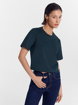 Футболка прилегающего силуэта, укороченная. Горловина круглой формы с обтачкой из основного полотна. Рукава втачные короткие, с отрезными манжетами. Нижний срез обработан швом вподибку.