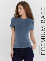 Горловина округлой формы обработана обтачкой из рибаны. Шов втачивания обтачки по спинке закрыт окантован поперечной бейкой из основного полотна. Рукава втачные, короткие. Линия плеча спущена. Нижние срезы футболки и рукавов обработаны швом вподгибку.