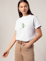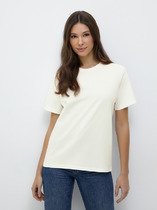 Женская футболка прямого силуэта – отличный выбор для стильного и удобного повседневного гардероба. Укороченная модель с круглой горловиной и короткими рукавами добавляет современный акцент в образ. Нижние срезы футболки и рукавов аккуратно обработаны швом вподгибку, что обеспечивает долговечность и аккуратный вид. Эта футболка идеально сочетается с различными элементами гардероба, позволяя вам создавать разнообразные образы.