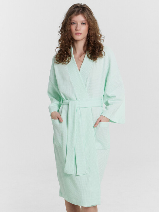 Женский халат из чистого хлопка – идеальное сочетание комфорта и стиля. Модель прямого кроя длиной до колен обеспечивает свободу движений и удобство. Халат с запахом и съемным поясом позволяет легко регулировать посадку по фигуре, подчеркивая талию. Практичность и функциональность добавляют удобные накладные карманы по бокам. А длинные рукава обеспечивают дополнительный комфорт и тепло. Изюминкой этого лаконичного халата является «вафельная» текстура материала, выполненного из чистого хлопка. Этот халат станет незаменимым элементом вашего домашнего гардероба, сочетая в себе уют и элегантность. Наслаждайтесь каждым моментом, проведенным в этом стильном и комфортном халате Mark Formelle.